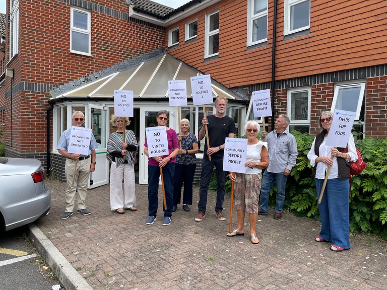 Inside the presentation, the mood among residents was generally negative towards the protests and many difficult questions were asked of the representatives of the landowners, developers and Solstice Park management.